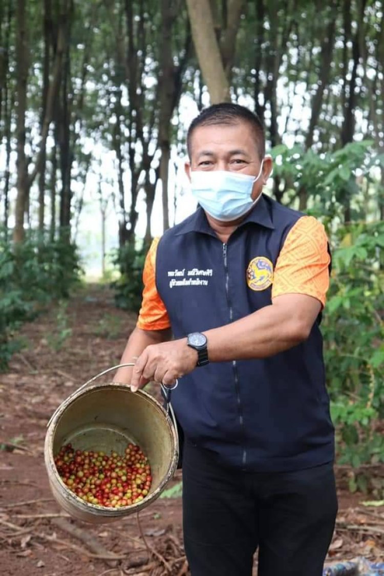 นายภัทรนันท์ บุญมานัด นายอำเภอศรีรัตนะ พร้อมด้วย นส.บุญญาพร รักษาวงษ์ เกษตรตำบลศรีแก้ว ลงพื้นที่พบปะเกษตรกรผู้ปลูกกาแฟอำเภอศรีรัตนะ ณ สวน นายบัญชา พาลี ประธานกลุ่มเกษตรกรผู้ปลูกกาแฟอำเภอศรีรัตนะ ต.ศรีแก้ว อ.ศรีรัตนะ จ.ศรีสะเกษ โดยมีสมาชิกกลุ่ม 20 คน ปลูกกาแฟพันธุ์อาราบิกาแซมในสวนยางพารา ได้ศึกษากระบวนการผลิตกาแฟ ตั้งแต่การเก็บลูกเชอรี(กาแฟที่สุก) การทำ Process