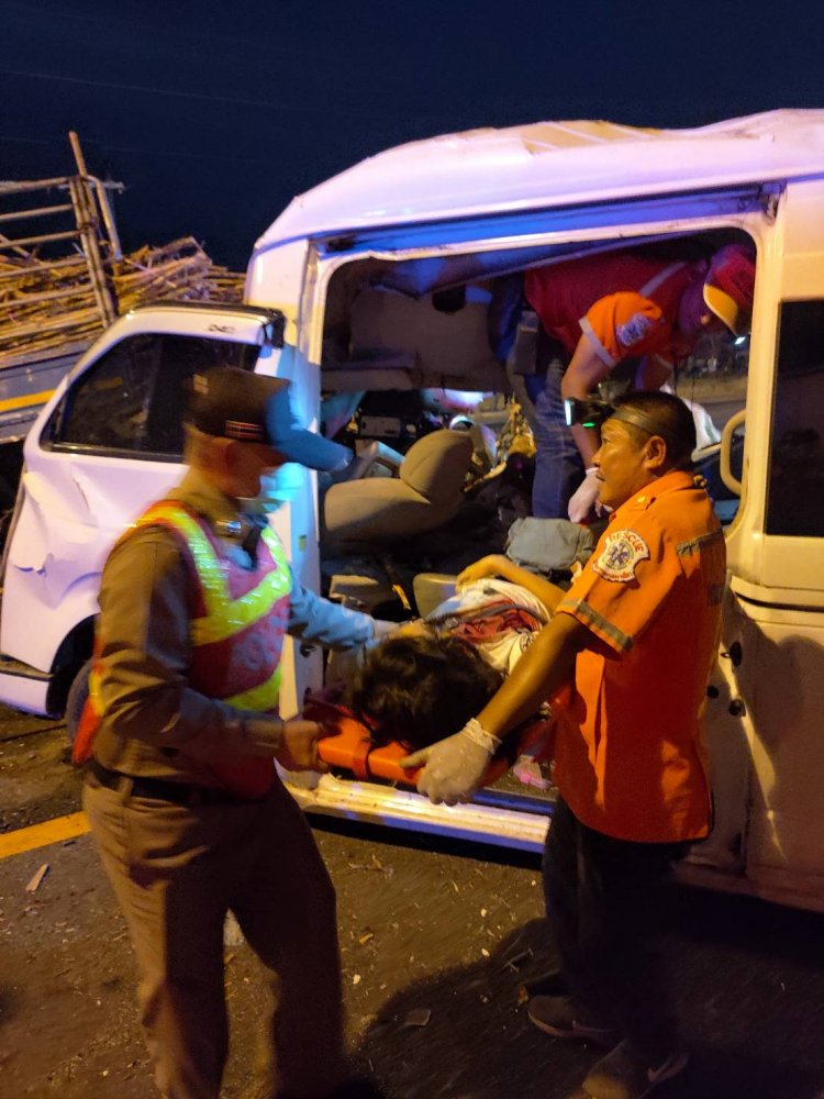 สลด!รถตู้พาเด็กปิดเทอมไปเยี่ยมผู้ปกครองที่กทม.พุ่งเสยท้ายรถบรรทุกดับ 2 สาหัส 1