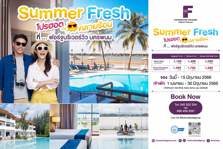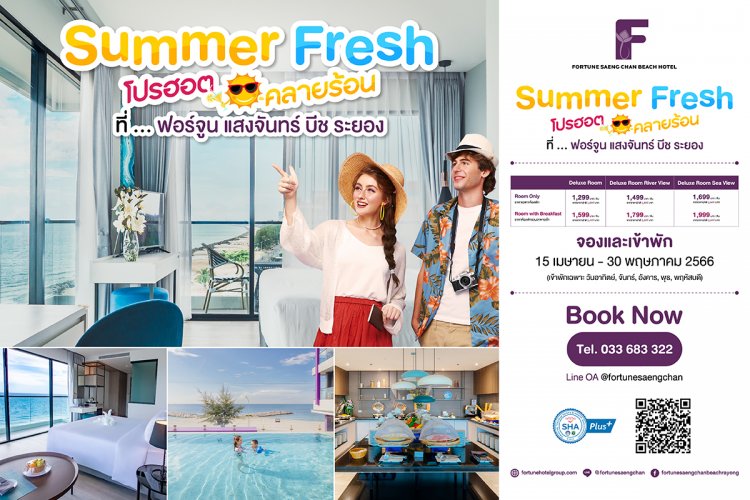 โรงแรมในเครือ ฟอร์จูน ภายใต้บริษัท ซี.พี.แลนด์ จำกัด (มหาชน) หรือ CP LAND เชิญชวนทุกท่านมาเติมเต็มความสุข พักผ่อน ช่วงเทศกาลสงกรานต์ไปกับโปรโมชั่น Fortune Summer Fresh รับส่วนลดห้องพัก ห้องอาหารสูงสุด 30% ตลอดเดือน เมษายน ถึง มิถุนายน 2566 นี้