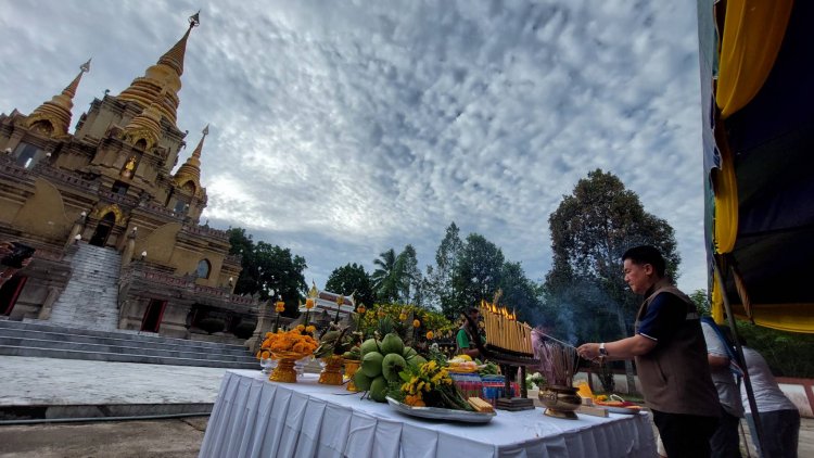 พุทธศาสนิกชนชาวเบตงศรัทธาอันแรงกล้าร่วมบวงสรวงบูรณปฏิสังขรณ์พระมหาธาตุเจดีย์พระพุทธธรรมประกาศ