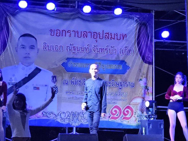 บุตรชายของผู้ใหญ่สมชาย จันทร์บัว ผญบ.บ้านโคกบ้าน –บ้านนา หมู่ 12 ต.โพธิ์งาม อ.ประจันตคาม จ.ปราจีนบุรี ที่จะอุปสมบทในวันที่ 11 มิ.ย.66 นี้ ณ พัทธสีมาวัดประดิษฐาราม อ.ประจันตคาม ท่ามกลางแขกผู้มีเกียรติ ญาติมิตร ร่วมงานเลี้ยง(โต๊ะจีน)กว่า 1,000 คน มีดนตรี – ศิลปินรับเชิญ ปลาคราฟ เชิญยิ้มมาขับร้องเพลงให้ความบันเทิงตลอดงาน ท่ามกลางความปลาบปลื้มปิติ