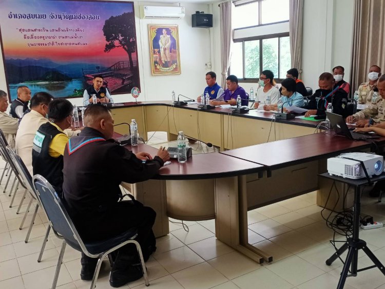 นายอำเภอสบเมย ปธ.ประชุมฝ่ายปกครอง ความมั่นคง เตรียมความพร้อมรับมือสถานการณ์การสู้รบฯ ตามแนวชายแดนไทย - เมียนมา ครั้งที่ 1/2566