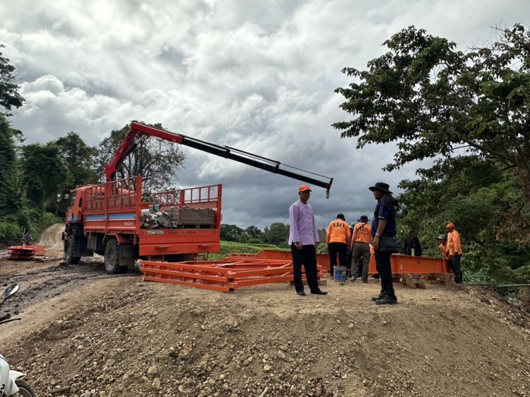 ปภ.เขต 8-ตาก ติดตั้งสะพานแบรี่ข้ามลำห้วยขุนแม่ท้อหลังเสียหายจากอุทกภัย
