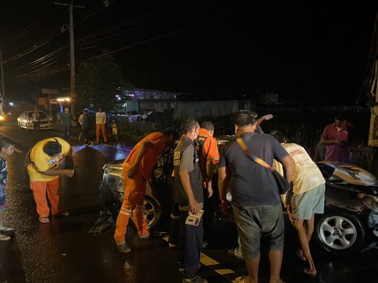 ระทึก!รองสารวัตรซิ่งเก๋งพุ่งเสยท้าย 10 ล้อไฟลุกท่วมหวิดย่างสด