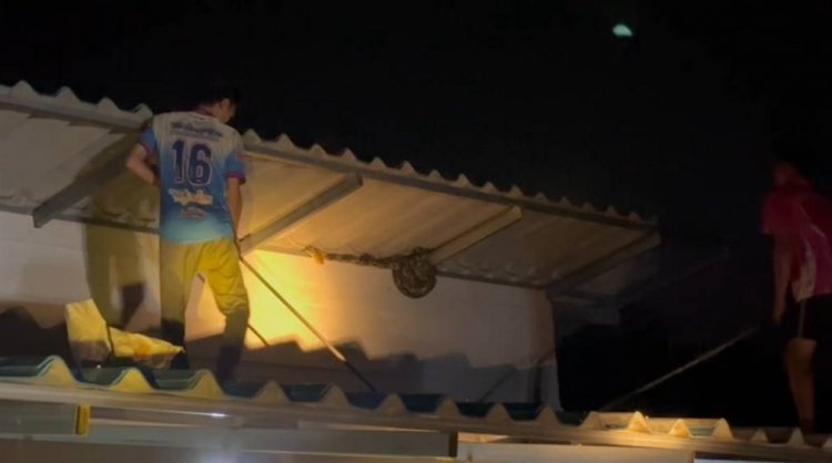 ก่อนหวยออก!กู้ภัยฯปีนดาดฟ้าบุกจับงูเหลือมยาว2เมตรหนัก40กก.