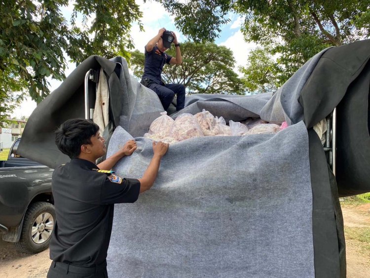 มุกดาหาร- ด่านกักกันสัตว์มุกดาหาร ตรวจเข้มเคลื่อนย้ายสัตว์ไม่มีใบอนุญาต ตามนโยบายของท่านอธิบดีกรมปศุสัตว์ สามารถจับกุมซากสุกรได้จำนวน 2,000 กิโลกรัม จากต้นทาง จ.บุรีรัมย์ ปลายทาง อ.เมืองมุกดาหาร
