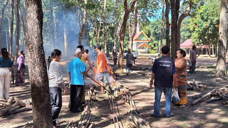 งานบุญใหญ่ กฐินสามัคคี วัดบ่อทองรังสรรค์ ญาติโยมสูงวัยร่วมใจกันเผาข้าวหลาม 1000 กระบอกแจกญาติโยมที่มาร่วมงาน หลวงพ่อเจ้าอาวาสบอกเพื่อสืบสาน อนุรักษ์วิถีชาวบ้านเพื่อให้เด็กรุ่นใหม่ได้เดินต่อ ปีหน้าขอเพิ่มจำนวนให้มากกว่าเดิม