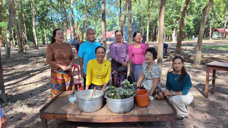 และที่เป็นกำลังใจให้กับบรดาพ่อเฒ่า แม่เฒ่าที่รับอาสากรอกข้าวหลามแล้ว วันนี้ นางวัชรภรณ์ แตงหมี นายอำเภอหญิง อำเภอกบินทร์บุรี พร้อมคณะ ได้เดินทาวมาให้กำลังใจงานบุญใหญ่และร่วมเผาข้าวหลามกับทางวัดด้วย