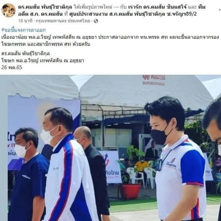 26 พ.ค. 2565 นายคมสัน พันธุ์วิชาติกุล รองโฆษกพรรคเศรษฐกิจไทย (ศท.) และโฆษกประจำหัวหน้าพรรคเศรษฐกิจไทย โพสต์ข้อความผ่านเฟซบุ๊กส่วนตัว ดร.คมสัน พันธุ์วิชาติกุล ชี้แจงการลาออกจากรองโฆษกพรรคและสมาชิกพรรคเศรษฐกิจไทย เนื่องพล.อ.วิชญ์ เทพหัสดิน ณ อยุธยา ประกาศลาออกจาก หัวหน้าพรรคเศรษฐกิจไทย ตนเองจึงลาออกด้วย