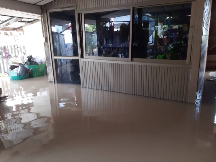 สำหรับใต้ถุนบ้านเต็มไปด้วยน้ำที่สูงและไหลแรง ส่วนพื้นบ้านชั้น 2 ในบ้านก็เริ่มถูกน้ำท่วมแล้ว ต้องมีการหนุนสิ่งของหนีน้ำ ถึงแม้จะอยู่บนบ้านแล้วก็ตาม ตอนนี้เหลือเหลือเพียงที่นอน ที่ยังไม่ถูกน้ำท่วม ส่วนพื้นที่ทำกับข้าว ก็เดินลุยน้ำทำกับข้าวเอา และตอนนี้ต้องใช้เรือพายเข้า-ออก เพียงอย่างเดียว