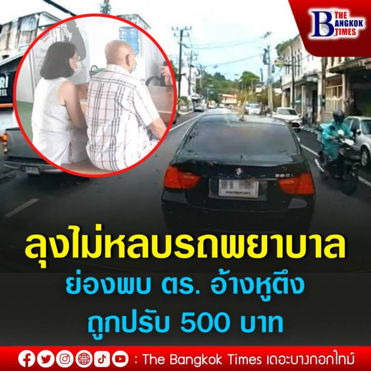 ลุงขับเก๋ง BMW ที่ไม่หลบรถพยาบาล ย่องเงียบพบตำรวจหลังถูกออกหมายเรียก เจ้าตัวอ้างอายุเยอะ หูตึง สุดท้ายจ่ายค่าปรับเพียง 500 บาท ก่อนให้กลับบ้าน