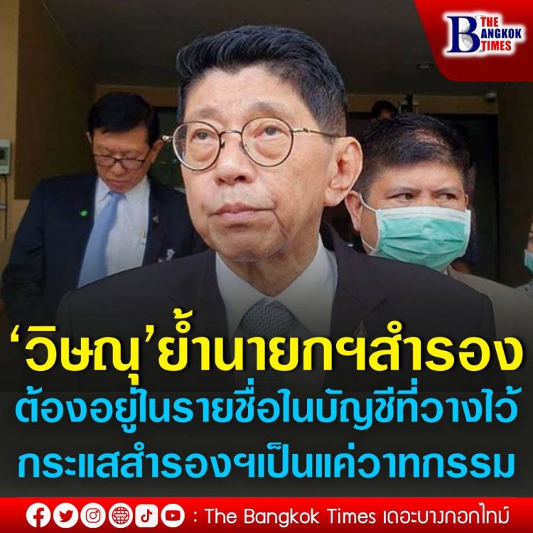 วิษณุ’ ย้ำ นายกฯ สำรองต้องอยู่ในรายชื่อในบัญชีที่วางไว้ 5 คน กระแสนายกฯ สำรองเป็นแค่เพียงวาทกรรม สุดท้ายจะหายไปกับสายลม