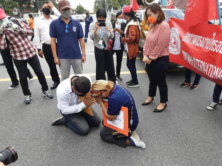 เครือข่ายแรงงานเพื่อสิทธิประชาชน-สหภาพแรงงานไทรอัมพ์ บุกทำเนียบ ร้องเงินชดเชยหลังถูกเลิกจ้างกว่า 200 ล้านบาท