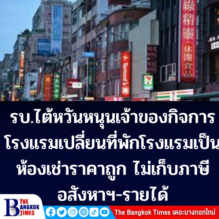 รัฐบาลไต้หวัน หนุนเจ้าของกิจการโรงแรมเปลี่ยนโรงแรมเป็นห้องเช่าราคาถูก โดยไม่เก็บภาษีอสังหาฯและรายได้