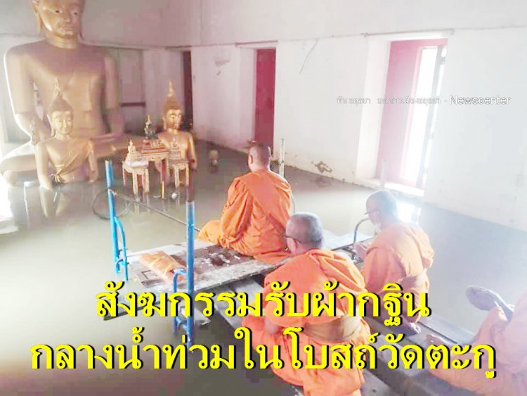 พระนครศรีอยุธยา-น้ำท่วม ไม่สามารถกั้นความศรัทธาได้ บุญกฐินวัดตะกู ได้ยอด 1,230,000 บาท ขณะที่พระสงฆ์ได้ตั้งนั่งร้าน กลางโบสถ์ที่ถูกน้ำท่วม ประกอบพิธีสังฆกรรมรับผ้ากฐินประจำปี 64