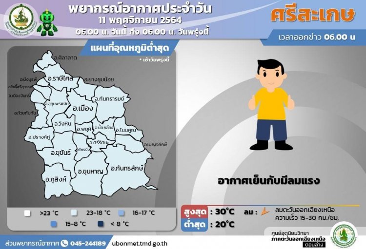อีสานใต้เช้าอากาศเย็น มีลมแรง บ่ายแดดจ้า