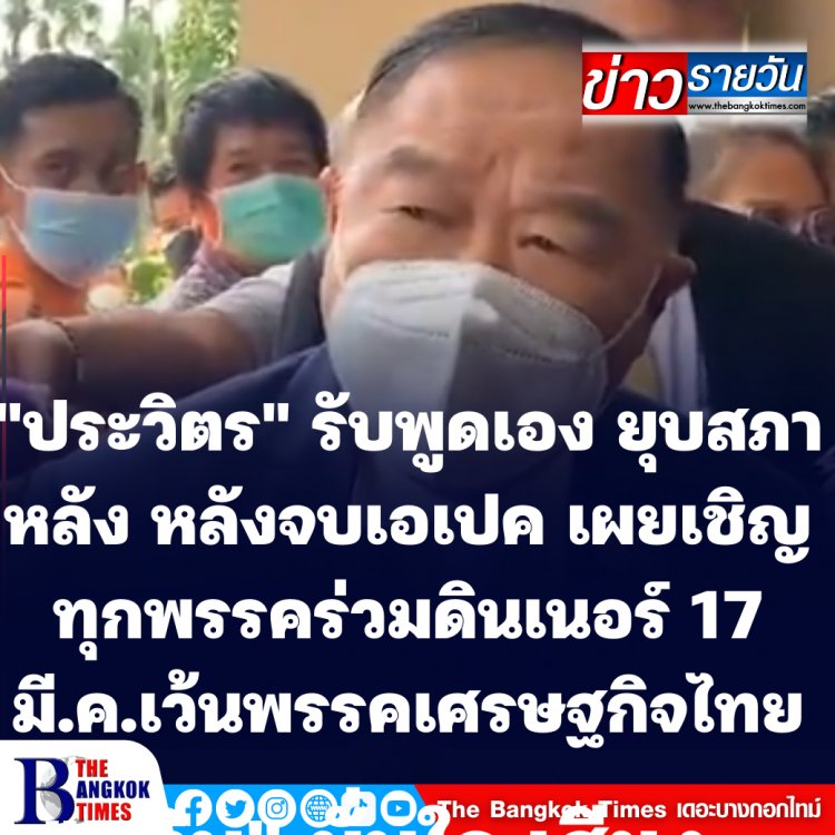 ‘บิ๊กป้อม’ รับเป็นคนพูดเองเรื่องยุบสภาปลายปี แต่สุดท้ายต้องให้นายกฯ เป็นคนตัดสินใจว่าจะยุบหรือไม่ ส่วนปมที่ไม่ได้เชิญพรรคเศรษฐกิจไทยเข้าร่วมดินเนอร์ในวันที่ 17 มี.ค. นี้ เป็นเพราะเชิญหัวหน้าพรรค พรรคเศรษฐกิจไทยยังไม่มีหัวหน้าพรรคจึงไม่ได้เชิญ