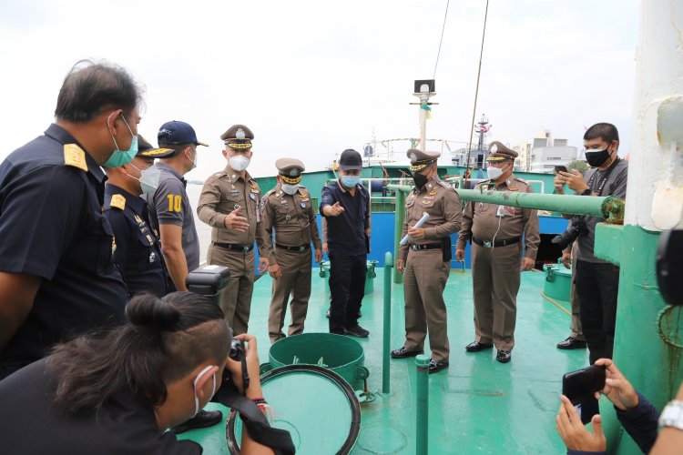 19 ต.ค. 2564 เมื่อเวลา 14.00 น. พล.ต.อ.สุชาติ ธีระสวัสดิ์ รอง ผบ.ตร.ใน ฐานะ ผอ.ศปนม.ตร. พล.ต.ท.จิรภพ ภูริเดช ผบช.ก. พล.ต.ต.สันติ ชัยนิรามัย รองผบช.ก. สั่งการให้ พล.ต.ต.สมควร พึ่งทรัพย์ ผบก.รน. พ.ต.อ.วัลลพ พวงผกา พ.ต.อ.ธนากร เลิศพรเจริญ พ.ต.อ.วีระศักดิ์ แย้มแสง รองผบก.รน. พ.ต.อ.ชัชวาล ชูชัยเจริญ ผกก.5 บก.รน. จับกุม นายสุวรรณ อินทองปาน อายุ 56 ปี นายมนตรี สุขจิตร อายุ 41 ปี นายสุริยันต์ เมฆแสน อายุ 34 ปี นายสุริยันต์ เมฆแสน อายุ 34 ปี พร้อมของกลางเรือเทคซ่าหรือ เรือเหนือสมุทร 9 ซึ่งเป็นเรือบริการรับของเสีย,น้ำมัน 4 แสนลิตร โดยจับกุมได้บริเวณใกล้เกาะสีชัง ละติจูด 13 องศา 8.850 ลิปดาเหนือ ลองติจูด 100 องศา 50.258 ลิปดาตะวันออก ห่างจากชายฝั่ง1.6 ไมล์ทะเล