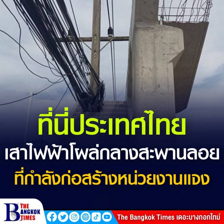 ชาวสัตหีบ สุดงง! เสาไฟฟ้า โผล่ทะลุกลางสะพานลอย กำลังก่อสร้าง หวั่นเกิดอันตราย