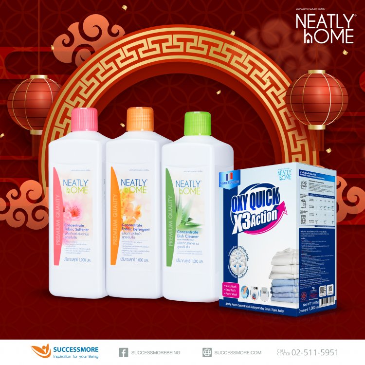 ทางซัคเซสมอร์จึงยกทับขบวบกลุ่มสินค้าชุดทำความสะอาดภายในบ้าน อย่างแบรนด์ NEATLY HOME ที่ตอบโจทย์ความต้องการเรื่องการดูแลความสะอาดภายในบ้านของผู้บริโภค และยังได้ซื้อสินค้าดีมีคุณภาพ คุ้มค่าทุกการจับจ่าย ช่วงเทศกาลตรุษจีนปีนี้สินค้าในกลุ่มทำความสะอาดจึงเป็นอะไรที่เป็นถือเป็นสิริมงคล และสินค้าที่ขายดีเป็นอันดับต้นๆ ของแบรนด์ NEATLY HOME เป็นผงซักฟอก น้ำยาปรับผ้านุ่ม และน้ำยาล้างจาน ซึ่งถือเป็นสิ่งจำเป็นในการทำความสะอาดในแต่ละจุดของบ้าน ไม่ว่าจะเป็นห้องครัว ห้องนอน เพื่อเปิดรับโชคลาภและสิ่งดีๆ ที่จะเข้ามา ซึ่งผลิตภัณฑ์ใช้ในครัวเรือนของซัคเซสมอร์ สะอาดปลอดภัย ย่อยสลายได้ตามธรรมชาติ เป็นมิตรกับสิ่งแวดล้อม ได้แก่
