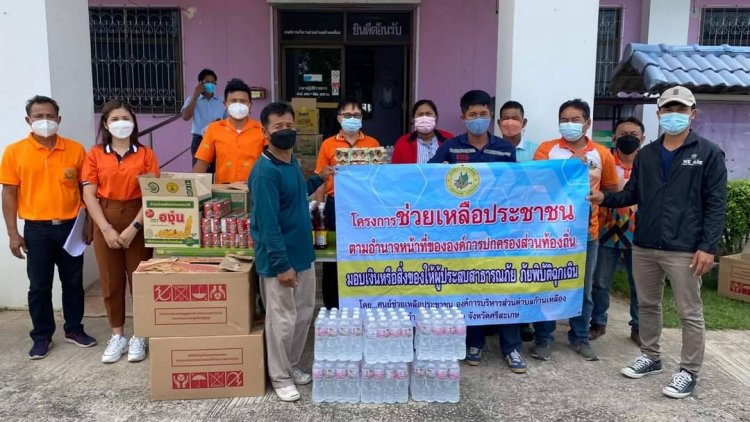 ศรีสะเกษ-หลังสงกรานต์ องค์การบริหารส่วนตำบลก้านเหลือง ระดมมอบเครื่องยังชีพแก่ผู้ป่วยติดเเชื้อไวรัสโควิด 19 ทุกตำบล