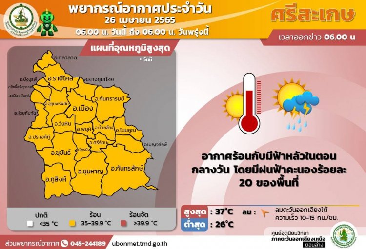 ประจำวันอังคารที่ 26 เมษายน 2565 ดังนี้