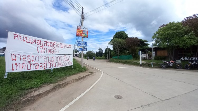 น่าน- ชาวบ้านดอนสวรรค์ หมู่ที่ 8 ต.ผาสิงห์ อ.เมืองน่านสุดทน ร้านเหล้าเปิดเพลงเสียงดังกระหึ่มจนดึกดื่นทุกคืน ขึ้นป้ายเรียกร้องขอความสงบคืนตลอดเส้นทางเข้าหมู่บ้าน