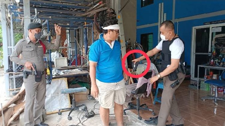จากการตรวจค้นตำรวจพบปืนพกสั้นขนาด.32พร้อมเครื่องกระสุนเต็มรังเพลิง ตำรวจจึงนำปืนกระบอกดังกล่าวออกมาเอาลูกกระสุนออกจากรังเพลิงเพื่อความปลอดภัย