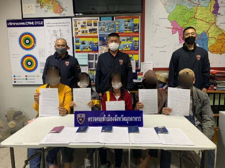 จากนั้นพนักงานเจ้าหน้าที่จึงได้แจ้งให้ทราบว่าการกระทำดังกล่าวเป็นความผิดข้อหา “เป็นคนต่างด้าวอยู่ในราชอาณาจักรโดยการอนุญาตสิ้นสุด” ตามพระราชบัญญัติคนเข้าเมือง พ.ศ.2522 จึงทำการจับกุมพร้อมบันทีกและนำตัวผู้ต้องหาทั้ง 5 คน ส่งพนักงานสอบสวน สภ.เมืองมุกดาหาร ดำเนินคดีตามกฎหมายต่อไป..