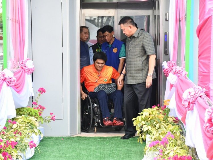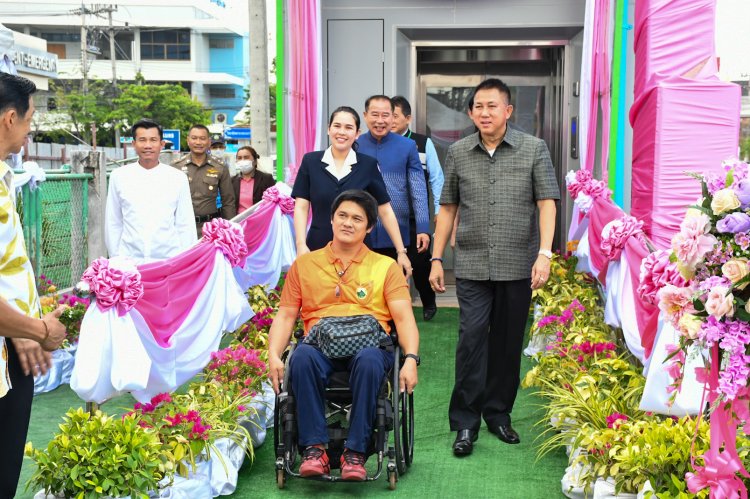 เปิดแล้ว!แห่งแรกในจังหวัดสะพานลอยพร้อมลิฟท์โดยสารเพื่อผู้พิการ ผู้สูงอายุ ประชาชนทั่วไปบริเวณหน้าโรงพยาบาลชลบุรี