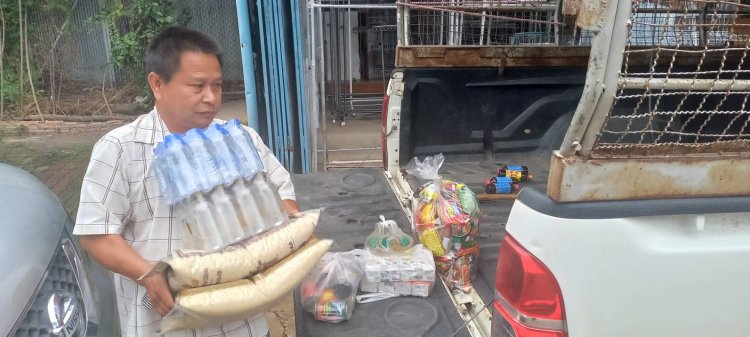 แม่สอด-"รัตน ท่าซุง- สท.หมอ ตอไม้ " คนไทยไม่ทิ้งกัน เป็นสะพานบุญ นำสิ่งของมอบให้ "ลุงชา" ชายสูงอายุวัย 67 ปี ผู้ยากไร้และมีลูกพิการ