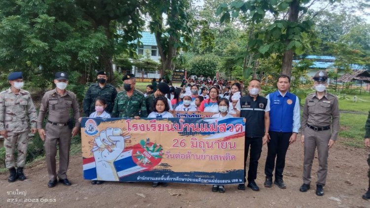 พร้อม โรงเรียนบ้านแม่สวด และภาคีเครือข่ายในพื้นที่ อำเภอสบเมยและพื้นที่ใก้ลเคียง ดำเนินกิจกรรมเนื่องในวันต่อต้านยาเสพติดโลก ประจำปี 2566 เพื่อสร้างการรับรู้ และประชาสัมพันธ์ถึงปัญหายาเสพติด ซึ่งได้ดำเนินกิจกรรม เดินขบวนประชาสัมพันธ์แก่ประชาชนทั่วไป ให้ความรู้เรื่องโทษของยาเสพติดแก่นักเรียนโรงเรียนบ้านแม่สวด จำนวน 183 คน และกิจกรรมสุ่มตรวจสารเสพติดในนักเรียนโดยความยินยอมของกลุ่มนักเรียนเป้าหมาย ผลการปฏิบัติเป็นไปด้วยความเรียบร้อย