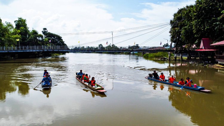 อบจ.พิจิตร ส่งหมออนามัย-อสม.นั่งเรือหางยาวเยี่ยมผู้ป่วยติดบ้านติดเตียงถึงบันไดบ้าน