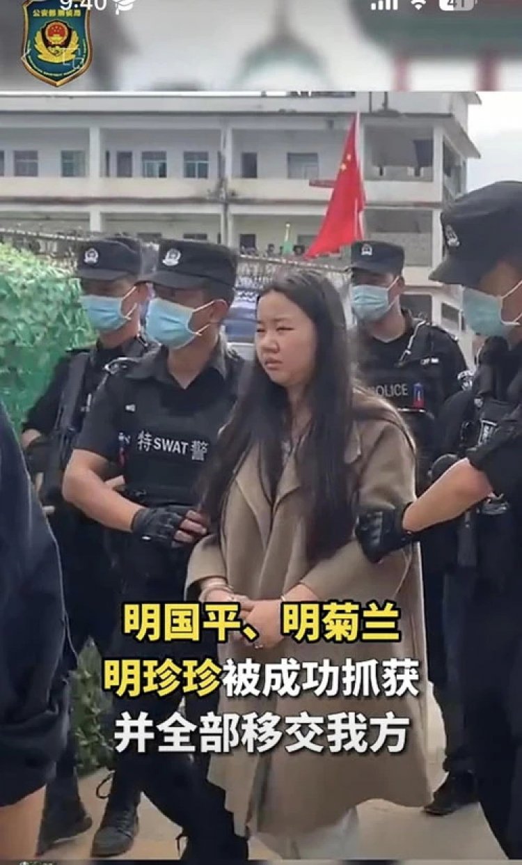 ก่อนหน้านี้เมื่อวันที่ 15 พฤศจิกายน 2566 ศาลสูงสุดของเขตปกครองตนเองโกก้างได้ออกหมายจับบุคคลทั้ง 4 ตามหมายจับของทางการจีน จากนั้นเจ้าหน้าที่ตำรวจเมียนมาาและโกก้าง สามารถบุกเข้าจับกุมบุคคลตามหมายจับได้ 3 คน ที่บ้านพักของพวกเขาในเมืองเล่าก์ก่าย ได้แก่ Ming Xuechang หัวหน้าใหญ่ Ming Guoping ลูกชาย และ Ming Xuechang หลานสาว ส่วน Ming Julan ผู้เป็นลูกสาว สามารถหลบหนีการจับกุมไปได้