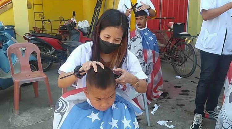 สาวใหญ่แก้บน!เปิดโรงทานตัดผมฟรีร่วมสมโภชน์งานกฐินสามัคคี