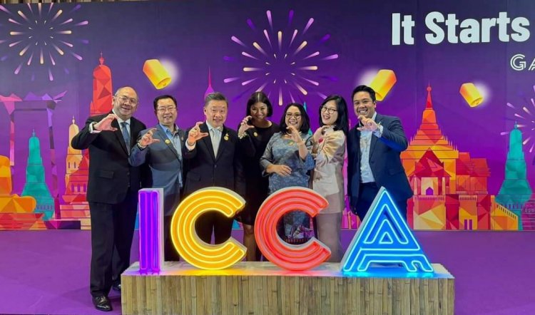 ดร.อรรชกา สีบุญเรือง ประธานกรรมการส่งเสริมการจัดประชุมและนิทรรศการ ทีเส็บ (ลำดับ 5 จากซ้าย) พร้อมด้วย นายจิรุตถ์ อิศรางกูร ณ อยุธยา ผู้อำนวยการสำนักงานส่งเสริมการจัดประชุมและนิทรรศการ (องค์การมหาชน) หรือ ทีเส็บ (ลำดับ 3 จากซ้าย) ร่วมให้การต้อนรับ นางมาธา โกเมส ประธานสมาคมการประชุมนานาชาติ หรือ ICCA (กลาง) นายเซนทิล โกพินาท ประธานเจ้าหน้าที่บริหาร ICCA (ขวา) และผู้เข้าร่วมงาน The 62nd International Congress and Convention Association Congress 2023 (ICCA Congress 2023) งานประชุมระดับนานาชาติที่มีผู้เข้าร่วมนับพันรายจากเกือบ 100 ประเทศทั่วโลก โดยมี ดร.พสุ โลหารชุม กรรมการฯ ทีเส็บ (ซ้าย) และนางสาวปนิษฐา บุรี นายกสมาคม TEA (ลำดับ 2 จากซ้าย) มาร่วมงานด้วย ณ ทรู ไอคอน ฮอลล์ ไอคอนสยาม เมื่อเร็วๆ นี้