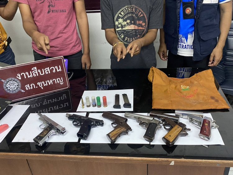 ดังนี้ เมื่อเวลาประมาณ 16.10 น. ได้ร่วมทำการจับกุมตัว นายธีรพงษ์ (นามสมมด) อายุ 15 ปี และนายสรวิชญ์ (นามสมมด) อายุ 17 ปี ในพื้นที่ตำบลกระหวัน อ.ขุนหาญ จ.ศรีสะเกษ ได้ของกลางเป็นอาวุธปืนไทยประดิษฐ์ซึ่งใช้ยิงกับเครื่องกระสุนปืนลูกซอง เบอร์ 12 จำนวน 4 กระบอก ปืนแบลงค์กัน ยี่ห้อ BAREDDA S56 CAL.9 MM. สีดำ ซึ่งดัดแปรงใช้ยิงกับเครื่องกระสุนปืนขนาด .380 จำนวน 1 กระบอก พร้อมซองกระสุน จำนวน 1 อัน อาวุธปืนแบลงค์กัน ยี่ห้อ COLT สีเงิน ดัดแปรงใช้ยิงกับเครื่องกระสุนปืนขนาด .380 จำนวน 1 กระบอก ซองกระสุน จำนวน 1 อัน