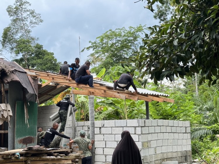 ทหารร่วม3 ฝ่ายเข้าช่วยเหลือซ่อมแซมบ้านให้กับชาวบ้านนราฯที่เสียหายจากพายุถล่ม