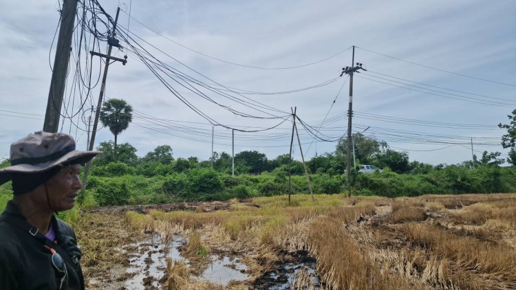 เดือดร้อนหนัก!สายสื่อสารหล่นขวางที่นา หว่านข้าวไม่ได้ แถมเสาไฟเอียง ไร้รัฐเหลียวแล