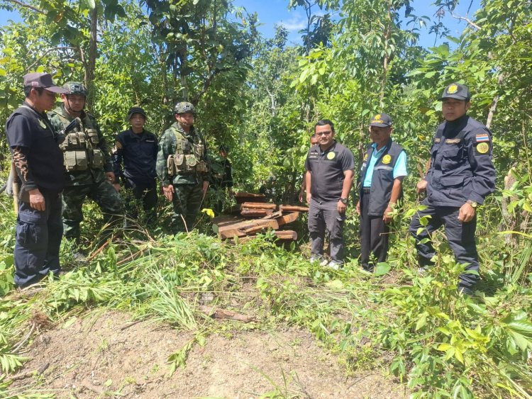ทหาร ฉก.ราชมนู ตรวจยึดไม้ประดู่แปรรูปซุกป่าพื้นที่ อ.พบพระ
