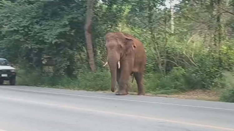 เตือนระวังภัย! "พลายแคระ"โผล่ออกหาอาหารกินนอกเขตอุทยานฯเขาใหญ่