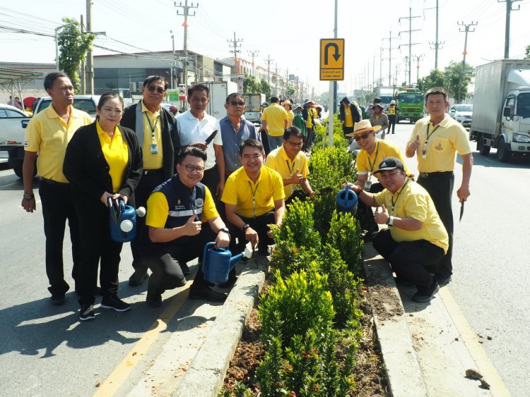 ทต.บางปูจัดกิจกรรมปลูกต้นไม้บนเกาะกลางถนนให้เป็นพื้นที่สีเขียว