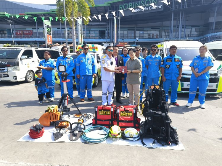 ที่บริเวณลานจอดรถด้านหน้าห้างสรรพสินค้าโรบินสันสมุทรปราการ คุณอรอุมา มูหมัดตาเฮด รองผู้อำนวยการฝ่ายบริหาร ศูนย์การค้าโรบินสันไลฟ์สไตล์สมุทรปราการ ได้ร่วมสนับสนุนบัตรของขวัญมูลค่า 3,000 บาท ให้กับสมาคมกู้ภัยสมุทรปราการ เพื่อนำไปใช้ประโยชน์ในการซื้อเครื่องดื่ม อาหาร อุปกรณ์ปฐมพยาบาลและสิ่งของจำเป็นต่างๆในการปฏิบัติหน้าที่ช่วยเหลือสังคมในช่วงเทศกาลปีใหม่ 2568 โดยมี นายจุมพล ศรวิเศษ นายกสมาคมกู้ภัยสมุทรปราการ นายจรัญ ลับเนตร สมาคมความปลอดภัยทางน้ำ นายกำพล มานุวัตร ที่ปรึกษา สมาคมกู้ภัยสมุทรปราการ เข้าร่วมกิจกรรมดังกล่าว
