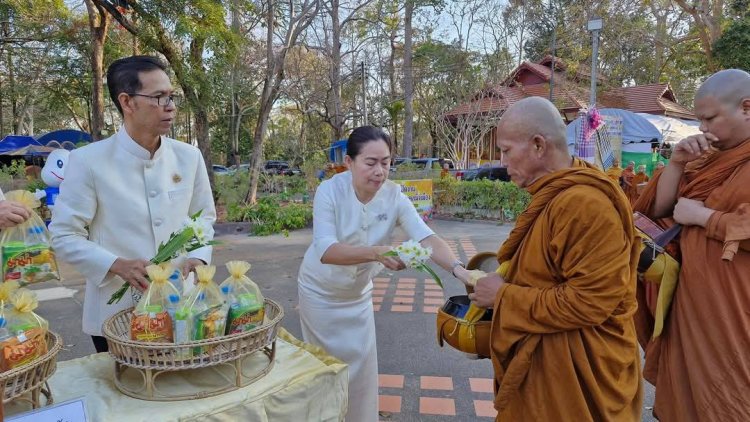 เมื่อวันที่ 12 กุมภาพันธ์ 2568 เวลา 07.00 น. ณ พุทธอุทยานพระมงคลมิ่งเมืองอำนาจเจริญ อำเภอเมืองอำนาจเจริญ จังหวัดอำนาจเจริญ นายเสนีย์ ส้มเขียวหวาน รองผู้ว่าราชการจังหวัดอำนาจเจริญ นำหัวหน้าส่วนราชการ ข้าราชการ พ่อค้า ประชาชน และพุทธศาสนิกชนชาวจังหวัดอำนาจเจริญ ร่วมทำบุญตักบาตร ข้าวสาร อาหารแห้ง แด่พระภิกษุสงฆ์ เนื่องในวันเพ็ญขึ้น 15 ค่ำ เดือน 3 ซึ่งเป็นวันมาฆบูชา พร้อมกันนี้ยังเป็นการจัดงานนมัสการพระมงคลมิ่งเมือง ประจำปี 2568 ในระหว่างวันที่ 6 – 12 กุมภาพันธ์ 2568 ณ พุทธอุทยานพระมงคลมิ่งเมืองอำนาจเจริญ