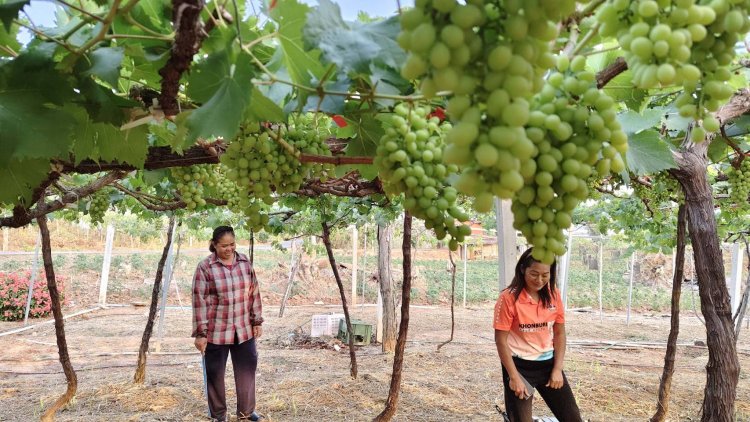 ชาวครบุรีปลูกองุ่นริมเขื่อนลำแชะ ผลดกเต็มสวน เตรียมตัดขายปีแรก